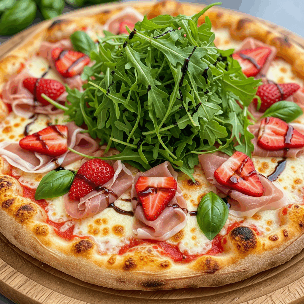 3. The Pizza with a Twist: Prosciutto & Strawberry Arugula Pizza