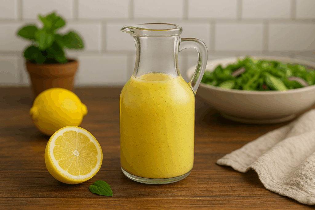 Season chicken breast with salt and pepper, cook in butter with garlic, then squeeze fresh lemon juice over before serving. - Lemon Salad Dressing