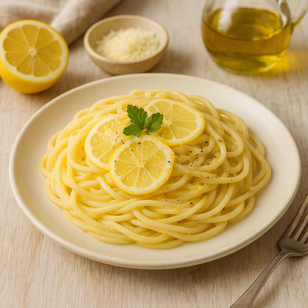 Cook spaghetti, then toss with olive oil, grated parmesan, lemon zest, and a splash of cream. Top with parsley. - Lemon Butter Chicken